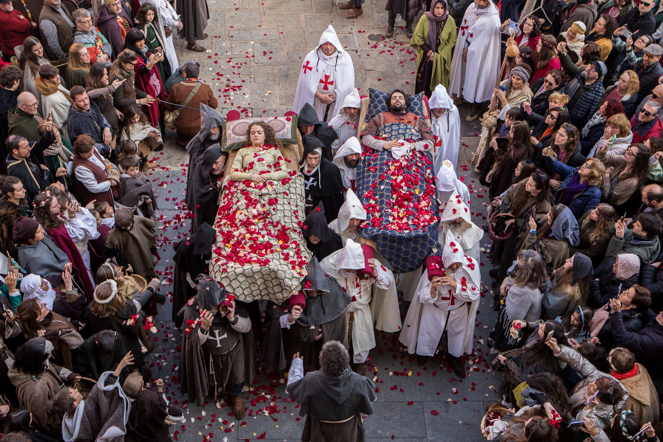 Toda la población de Teruel y los cerca de cien mil visitantes, que triplican la localidad, inundan las calles rigurosamente ataviados con vestimentas del siglo XIII. Por las plazas y calles, unos cuatrocientos participantes representan la historia casi a tiempo real. Durante estos días, la capital turolense se llena de conciertos, animación, teatro, y multitud de actividades para todas las edades, transformando Las Bodas de Isabel en un gran atractivo turístico. Un viaje en el tiempo que te hace sentir como dentro de una película.